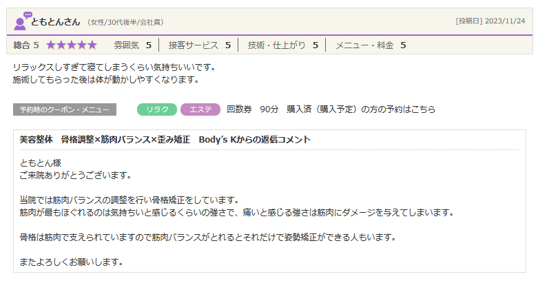 リラックスしすぎて寝てしまうくらい気持ちいいです。