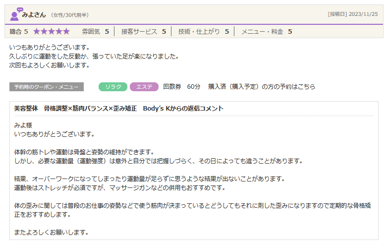 ホットペッパービューティーより口コミをいただきました